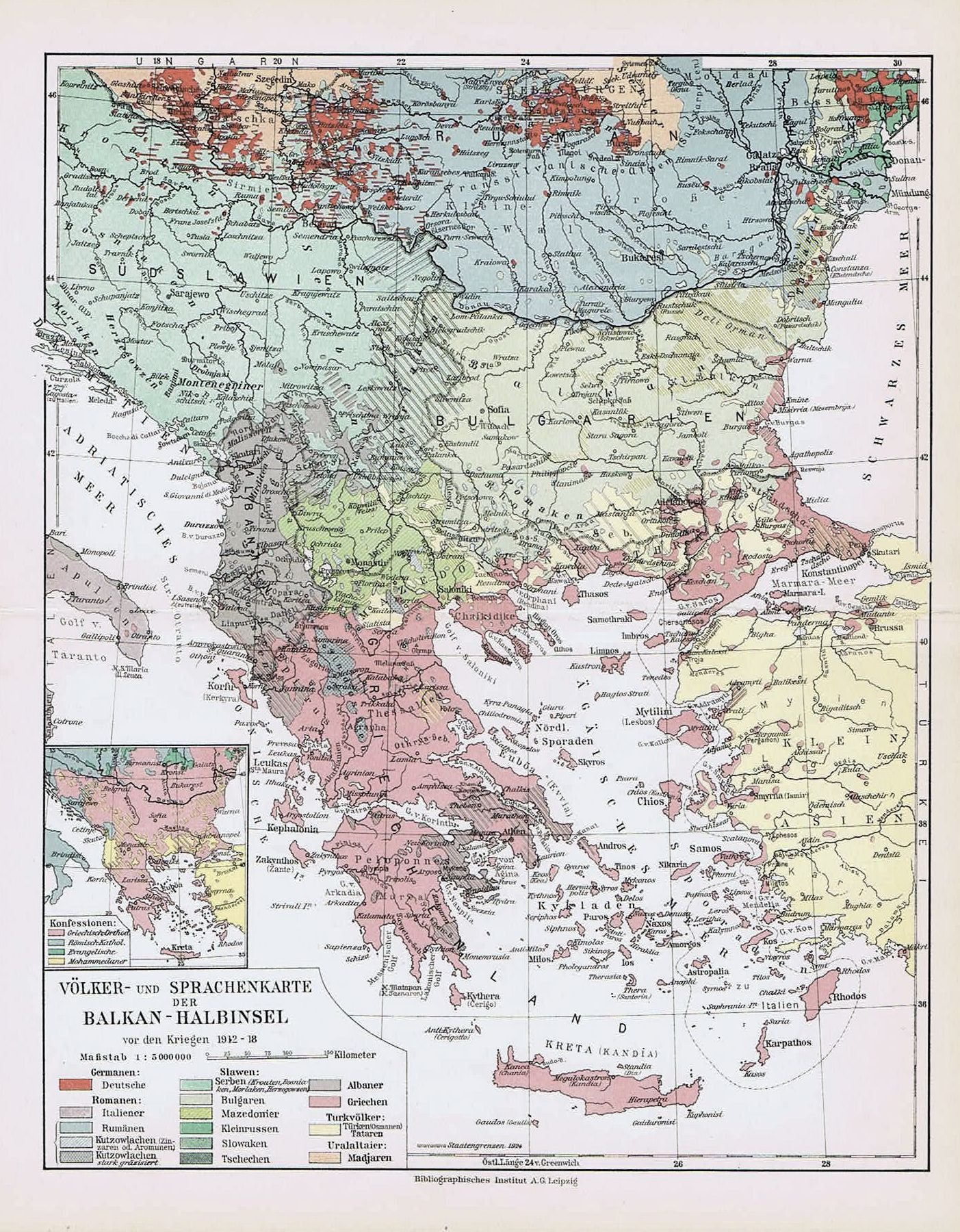 "Harta e popujve dhe gjuhëve të Gadishullit të Ballkanit para luftërave 1912-18" u botua më 1924 në Lajpcig.